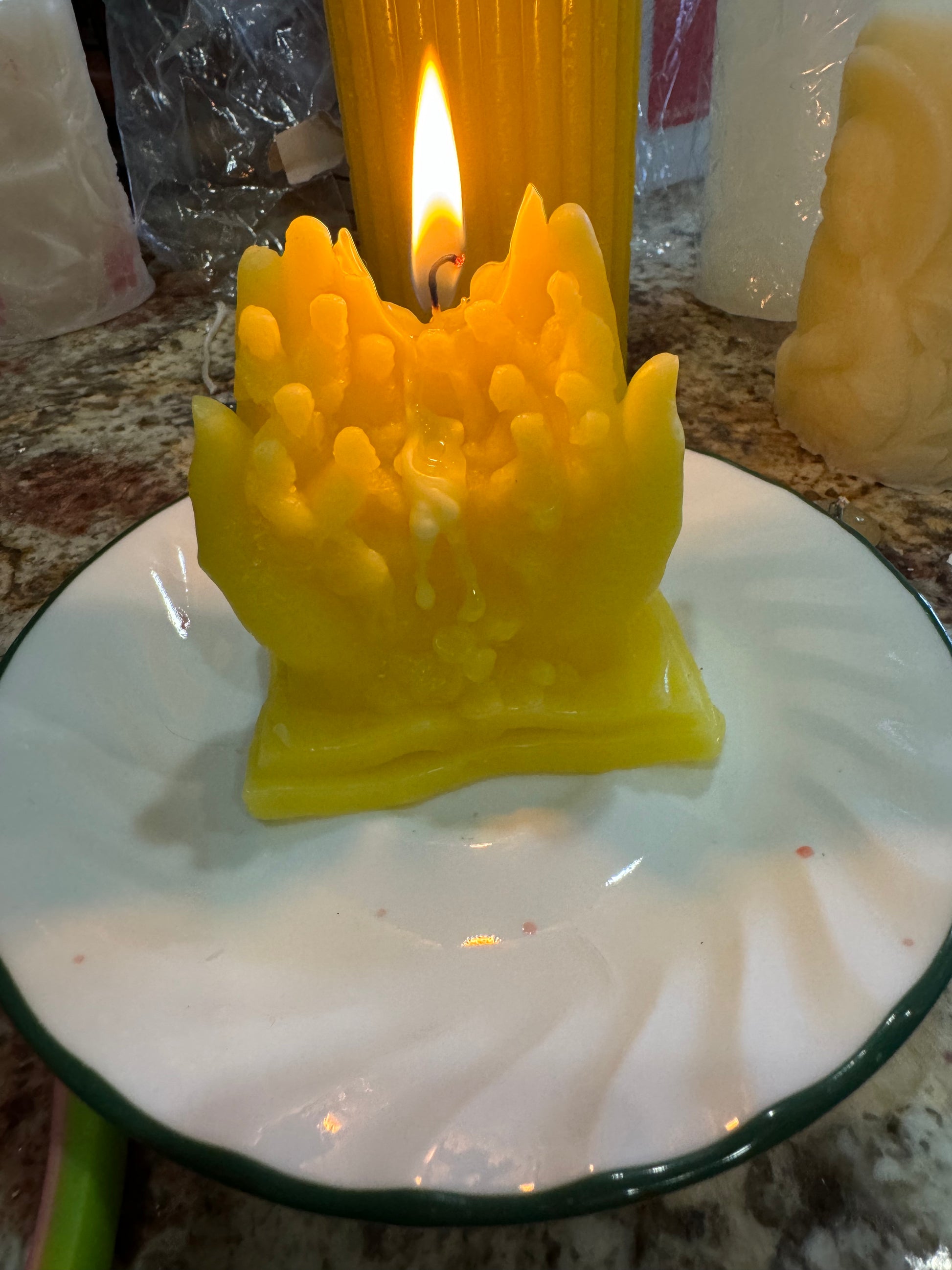100% natural beeswax candle. God hold Jesus and apostles in his hands. Religious art candle. Great gift for Easter.
