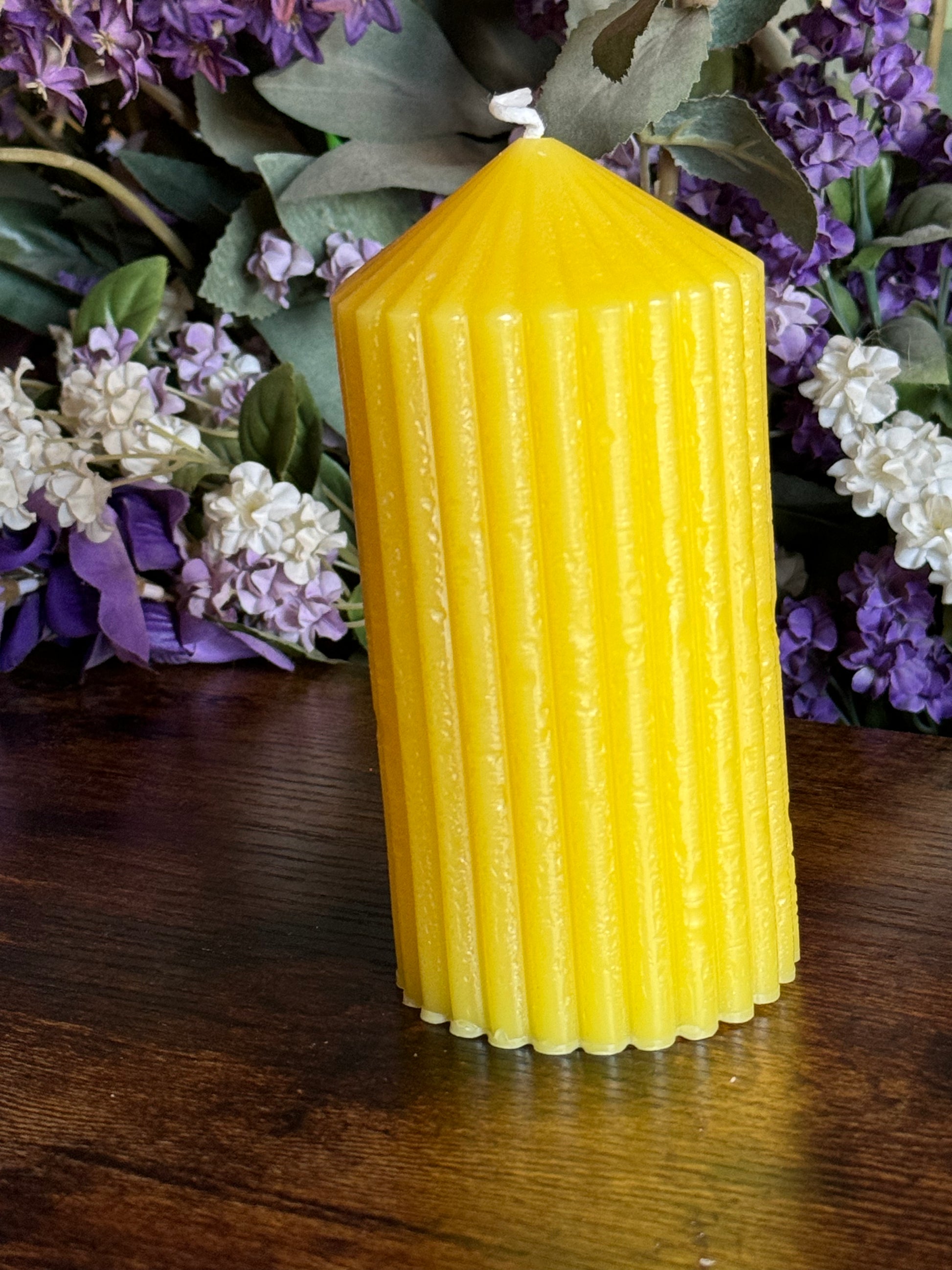 Ridged beeswax pillar candle